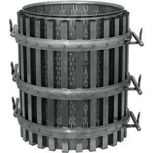 Gabbia realizzata interamente in acciaio inox AISI 304. Completa di cerchi e perni di fissaggio.
