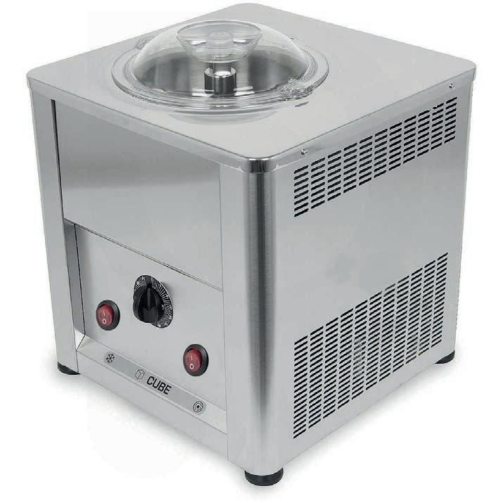 La macchina per gelato Cube ti permette di preparare gelati, sorbetti o granite. La gelatiera professionale Cube è perfetta sia per la casa che per la piccola ristorazione. Completamente prodotta in Italia è costruita interamente in acciaio inox lucido e satinato. All’interno si trova un compressore che produce freddo per un uso continuo della macchina. Il sistema di sicurezza impedisce alla pala in acciaio inox di muoversi quando viene rimosso il coperchio trasparente. Come motore ha in dotazione un motoriduttore a basso numero di giri impedendo al prodotto di incorporare troppa aria ottenendo cosi un gelato con sapore pieno.