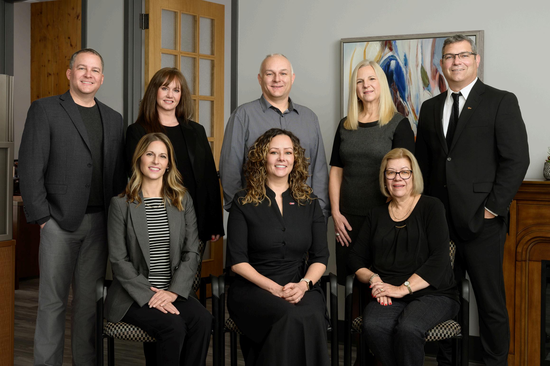 From left to right, top to bottom: Marc-André Thériault, Project Analyst; Melissa Watters, Loan & Accounting Administrator; Rick Nicholson, Business Development Seminar Coordinator; Jocelyne Brown, Project Analyst; Michel Gallant, Project Analyst; Myriam Sonier, Project Analyst; Nathalie Gallant, Executive Director; Bernice Clements, Administrative Assistant.