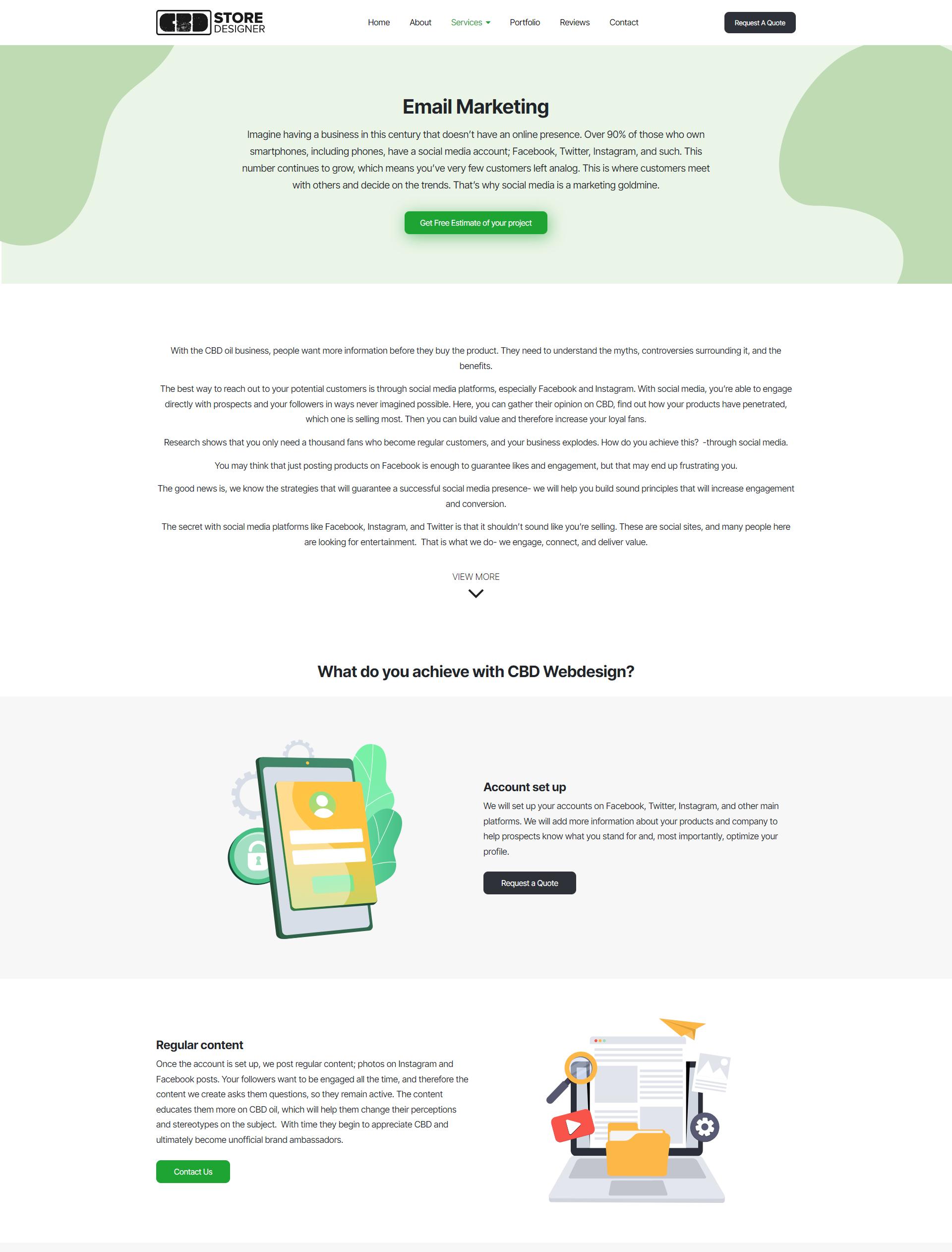 Welcome to our email marketing services page at https://cbdstoredesigner.com/services/email-marketing/ where we provide a range of services designed to help CBD store owners create effective email campaigns. As a CBD store owner, we understand that you face specific regulatory challenges that need to be considered when marketing your products. That's why our email marketing services focus on compliance with regulations, while still creating engaging and effective campaigns.