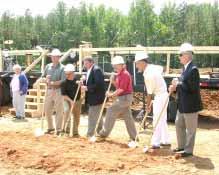 Pastor George Fuller joins others in preparing to break ground for New Community Church as Ms. Exxa Hobbs looks on.