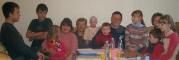 The families at Village of Hope: Andre, Natasha, Daniel and Dimitry Moskalenko and their foster children, Katia and Tanya, and Yuri, Lena, Jana, and Diana Maltsev and their foster children, Sasha and Misha.