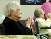so he was a bit anxious that he would not be able to be heard or be able to complete the program. As we walked into the nursing home, a sign greeted us, “Today, Mr. Mac is back!” We walked the halls, inviting persons to come to the assembly room. Later, Mr. Mac would go back to the rooms of those who would like a visit but were unable to travel to his program. He has a separate but similar routine for these individual visits.