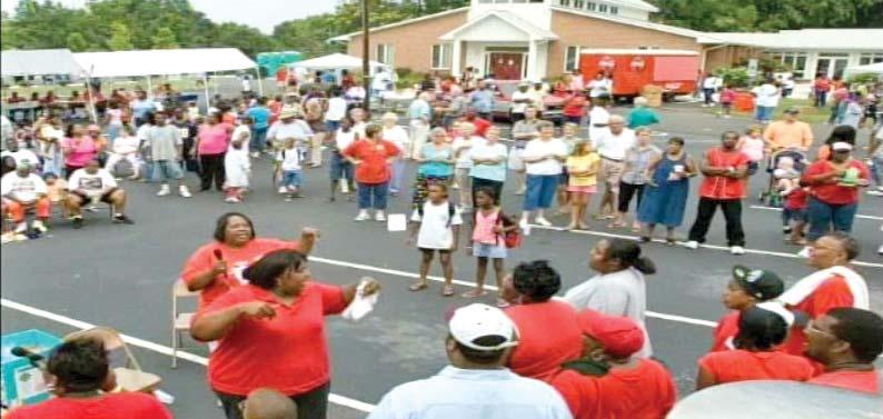 December 22nd was a cold night in Henderson, NC; it was the coldest night in weeks. Yet that did not stop over 300 people from coming out for a time of shared gifts of food and cheer. In the parking lot of Greater Little Zion Church in the Flint Hill neighborhood of Henderson, the efforts of a threechurch partnership were realized in the form of 200+ boxed Christmas meals and frozen turkeys given to the community. The initiative is one of three projects First Baptist Church, Shiloh Baptist Church, and Greater Little Zion United Holy Church host each year. This partnership of churches also hosts an early-summer day camp and late-summer block party where last year over 1,000 backpacks with schools supplies were given out. While the issues of poverty are widespread in Henderson, they have committed to focus their collective efforts on the neglected neighborhoods surrounding Greater Little Zion Church. In keeping this partnership small (it is only made up of these three churches) and committing to the Flint Hill neighborhood (rather than poverty in all of Henderson), the partnership can remain nimble and responsive and also be able to see true fruit from their efforts. These churches realize that programs and projects help to alleviate the immediate effects of poverty, yet they know efforts must also address the systemic nature of poverty in Henderson. This has led to a complete re-imagining of what is possible for this community. Rather than just offer a meal or a short-term solution, this partnership envisions a rebirth.