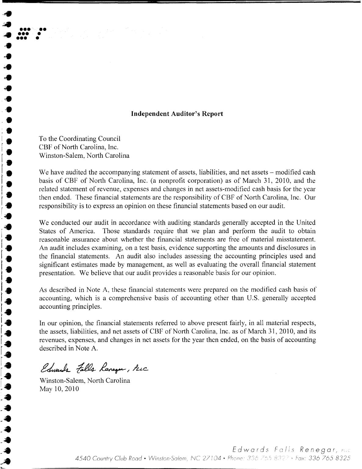 The recession facing our state and nation has had a negative financial impact on many partner congregations. as a result, some long-term contributing churches have reduced their CBFNC gifts. This loss has been more than made up through gifts from new congregations or increased giving from congregations who gave minimally in the past. These increases are coming mainly through utilization of the mission resource Plan. as a result, overall financial contributions to CBFNC remain very strong, and we give thanks for the sacrificial gifts and generosity of all contributors – both congregations and individuals. We are blessed by all the amazing ministries our fellowship is able to do together through these gifts. Financial highlights include the following: