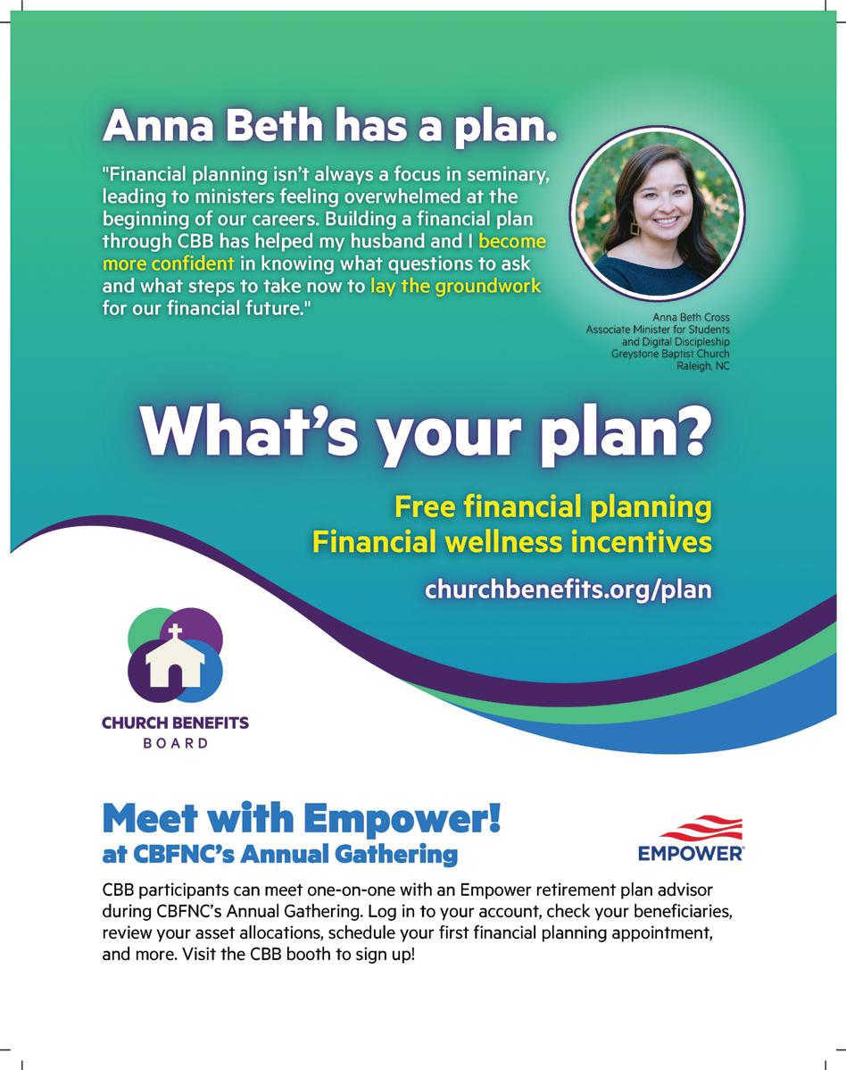Theological education students are invited to a special time of fellowship and networking with Lou Ann Gilliam, CBFNC’s director of ministerial transitions, and Andy Hale, CBFNC’s associate executive coordinator. This will be a time of connection, sharing, and resourcing for students on Friday of Annual Gathering at 1:30 p.m. in The Youth Worship Room. Free lunch and gas gift cards will be provided for all theological student attenders.