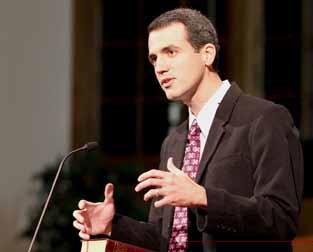 Tito Madrazo, pastor, Drexel BC and student at GardnerWebb Divinity, preaches at FBC, Shelby.