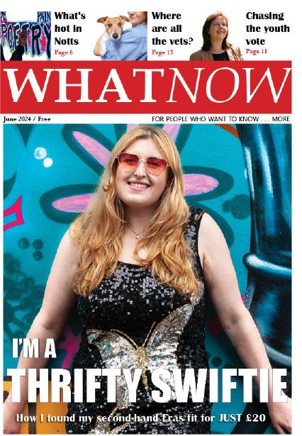 June 2024 / Free WHATNOW FOR PEOPLE WHO WANT TO KNOW . . . MORE I’M A THRIFTY SWIFTIE How I found my second-hand Eras fit for JUST £20 Page 6 Page 15 What’s hot in Notts Where are all the vets? Chasing the youth vote Page 11
