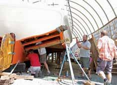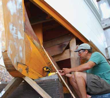 plates, irons, and stanchions were primed and painted for installation as well. Rosie’s mast, boom, jib club, and mainmast gaff were collected from storage; her spars were in excellent condition but needed minor restora tions before the mast can be rigged and stepped in the fall.