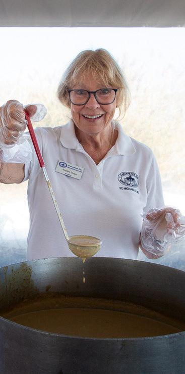 Clockwise from top left: On Sept. 1, 2023, CBMM announced the expansion vessel PATRIOT. (Photo by Sharon Thorpe); More than 250 children explored through CBMM Summer Camp. (Photo by Sharon Thorpe); During the summer on vessels in its historic floating fleet. (Photo by Lloyd Devigne); CBMM with a graduation ceremony on Dec. 15, 2023. Mitchell is the first woman certified. (Photo by George Sass); Scouts from the Chesapeake Multicultural cars. (Photo by Eric Detweiler); One of just a handful of U.S. Coast Guard a third-order Fresnel lens to its new home in CBMM’s Welcome Center. hand March 2, 2023, for the opening of The Changing Chesapeake, a special review process offering perspectives on life in the Chesapeake region. (Photo bivalve at OysterFest on Saturday, Oct. 28, 2023. (Photo by Sharon Thorpe); buyboat Mr. Dickie, refit of the 1920 buyboat Winnie Estelle, and maintenance and volunteers collaborated to prepare the new Welcome Center for opening. Center. (Photo by Eric Detweiler); CBMM invited everyone involved in education Gratitude Day on June 23, 2023. (Photo by Sharon Thorpe); CBMM volunteer (Photo by Sharon Thorpe); Once again, CBMM celebrated all things sea (Photo by Sharon Thorpe); A pair of local high school students in the Talbot spirited Watermen’s Rodeo boat docking contest was a highlight of Watermen’s for the exhibition Her Helm in September 2023 including sailboat skipper Eunice Lin. (Photo by