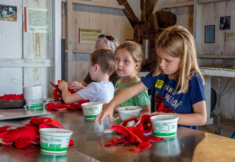 last year with an exciting array of new exhibitions, special events, highlighted by the Grand Opening of the new Welcome Center. expansion of its on-the-water experience offerings through the acquisition of the cruise explored the magic of the Chesapeake’s people, traditions, animals, and environment summer of 2023, CBMM offered Harbor Highlights Cruises, led by volunteer crew, honored Megan Mitchell’s graduation from the Shipyard Apprentice Program woman to graduate from CBMM’s Shipwright Apprentice Program since it became state Multicultural Resource Center came to campus to get help building their Pinewood Derby Guard certified lampists, Kurt Fosburg (far left) visited CBMM in June 2023 to relocate (Photo by George Sass); Dozens of artists, including Dr. Laura Guertin, were on special exhibition of more than 75 works selected through a community panelist (Photo by Rick Shearer); Approximately 3,500 people celebrated the Bay’s favorite Thorpe); CBMM’s Shipyard stayed busy between the new build of the Chesapeake maintenance on the historic floating fleet. (Photo by George Sass); A team of CBMM staff opening. Here, volunteer Bill Atkinson installs a model sinkbox in the new Welcome education to be celebrated on campus at its inaugural Education Professionals volunteer Bob Stelmaszek shows a young guest around the new Welcome Center. glass with two editions of the Eastern Shore Sea Glass & Coastal Arts Festival. Talbot Mentors program smile for the camera. (Photo by Ben Hiller); The alwaysWatermen’s Appreciation Day in August. (Photo by Eric Detweiler); The opening event 2023 brought together women who captain vessels around the Chesapeake region, by Sharon Thorpe).