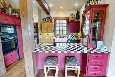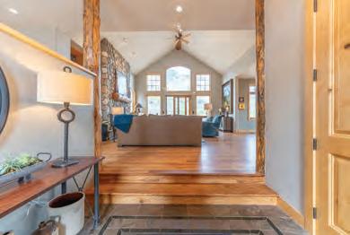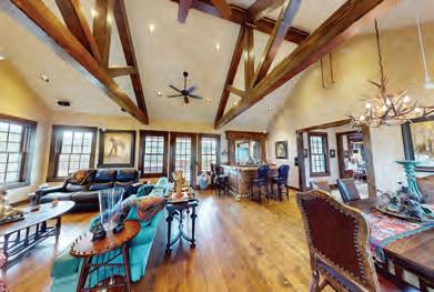 This 5-bedroom, 4.5-bath residence boasts over 4,200 square feet of luxurious living space and sits on nearly 1 acre. The great room impresses with soaring 20-foot vaulted ceilings, hand-hewn timber accents, hardwood floors, a beautiful vintage bar with barback, large dining table, ample windows that flood the space with natural light. Two stone fireplaces add warmth and ambiance to both the living and sitting areas, while the chef’s kitchen is equipped with premium appliances, and a breakfast bar.