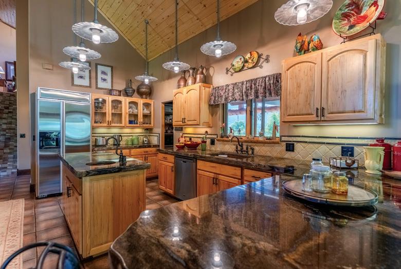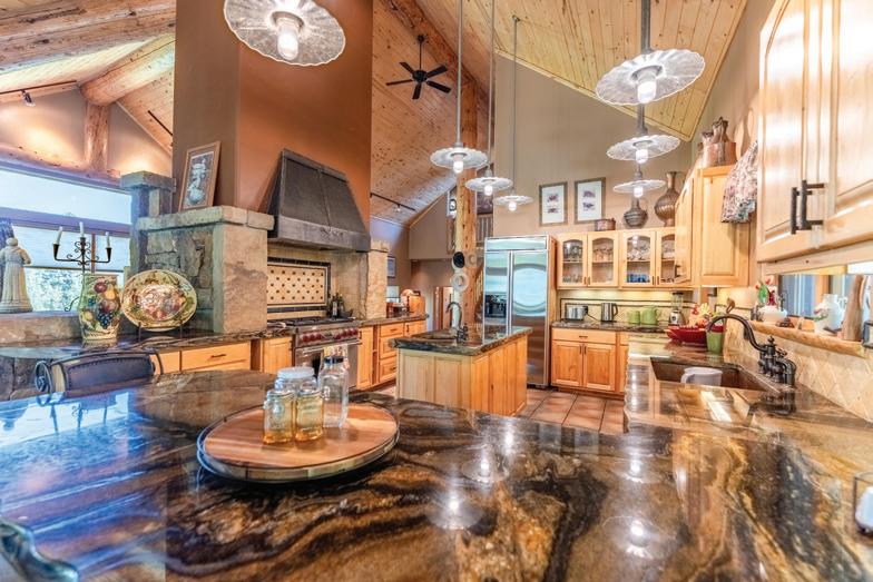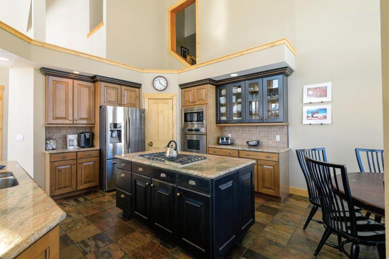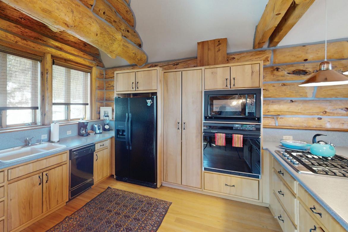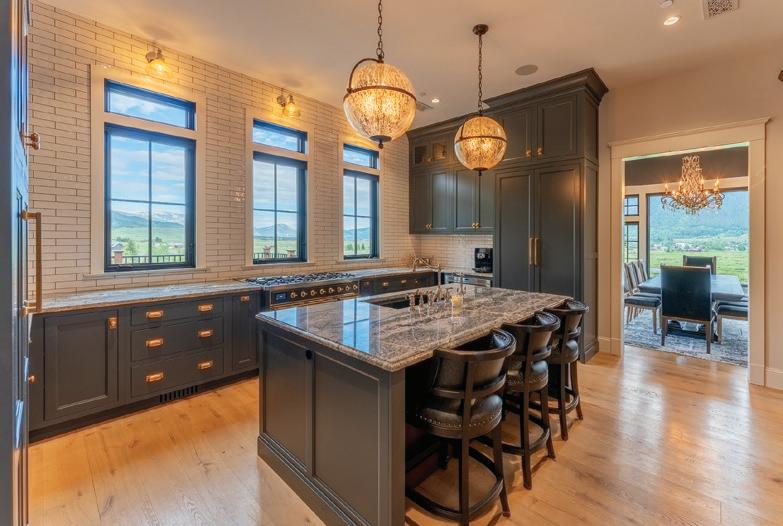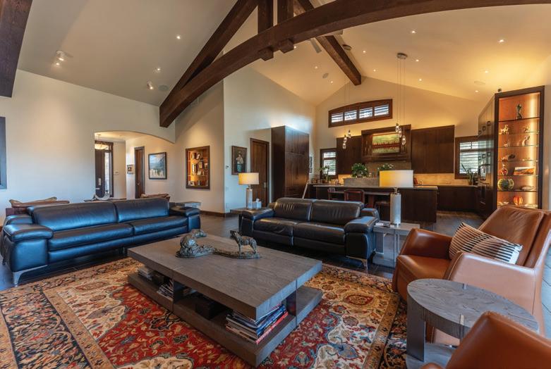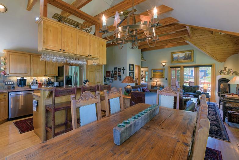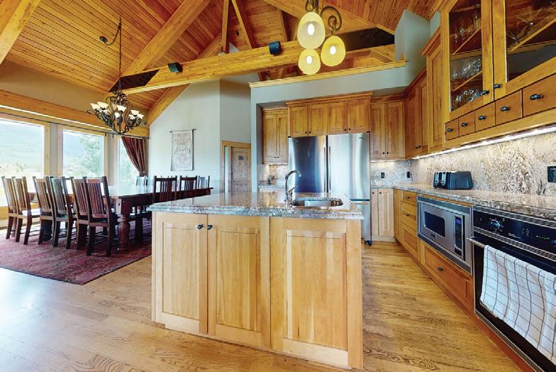This immaculate home features custom wormy maple cabinets, reclaimed hardwood flooring, natural stone counters and baths, gourmet kitchen with Wolf range, slab counters and custom fixtures. The Great room has impressive vaulted ceilings, large hand-hewn logs and expansive views all centered around an incredible hand made stone fireplace. It’s that feeling of Western substance - the combination of open space, use of natural materials from floor-to-ceiling, yet warm and cozy.