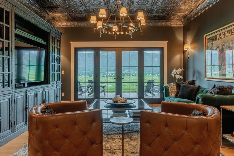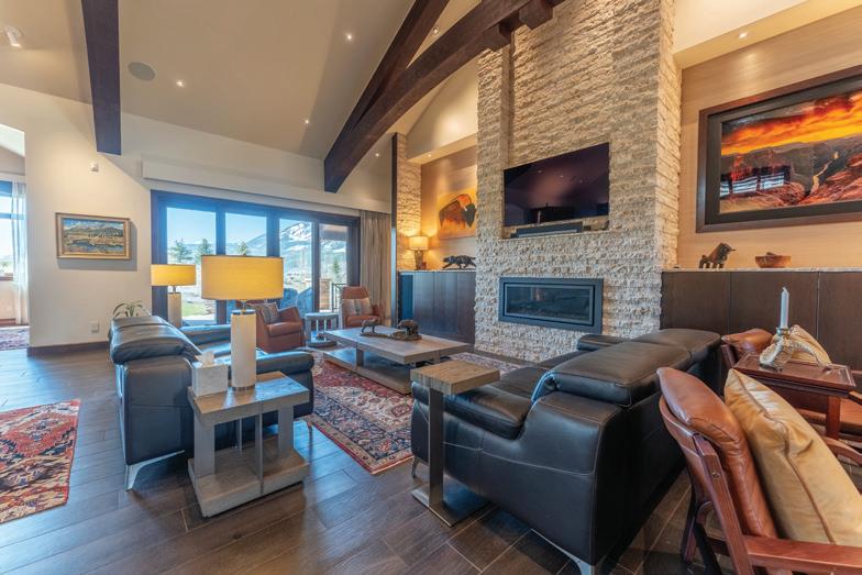 This home is 11,323 square feet, and boasts 11 bedrooms, including four master suites, each with their own private outdoor hot tubs. The expansive common areas encompass a cozy living room, a spacious dining room, a gourmet kitchen, and a relaxing lounge. 39 Whetstone also features a massage room, 2 Finnish saunas, and a fully equipped gym. Additionally, there is a one-bedroom owner’s apartment and a bedroom with ensuite bathroom above the three-car garage.