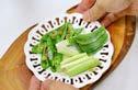어 잎, 케일 잎, 단호박 튀김, 베이비 콘, 삶은 달걀 반쪽, 닭고기와 돼지고기