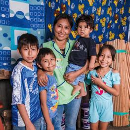 Thousands of miles away in the city of Iquitos, Perú, Rocio embraces her role as both mother and provider for four children. When her children’s father left, Rocio faced the harsh realities of food insecurity and financial hardship alone. Yet, through resilience and determination, she honed her broom-making skills and built a small business at home.