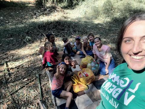 "Ainda do tempo do abrigo, Camila que cresceu aqui e aos 17 anos entrou na Faculdade Teológica Batista Pioneira, fez pós graduação, atuou como missionária e atualmente está na França, servindo a Deus e estudando francês Que seria dela se não fosse o Lar Criança Feliz?" (Lar Criança Feliz de Cotia)