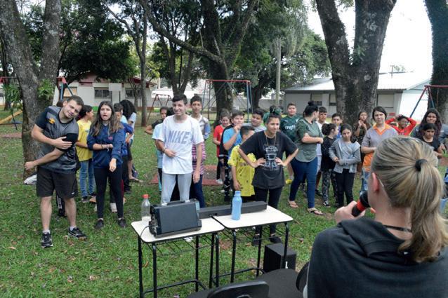 e aprender com a gincana bíblica, idea lizada e executada pelos irmãos de Cas cavel/PR. Dez equipes disputaram pela vitória em provas baseadas no livro de Atos. Por fim, houve a despedida, com premiações do concurso bíblico e da gincana, seguidas por um delicioso lan che para sustentar as crianças (e adul tos) na volta para casa. Ao total, participaram mais de noven ta crianças, acompanhadas por cerca de quarenta líderes e auxiliares. Hou