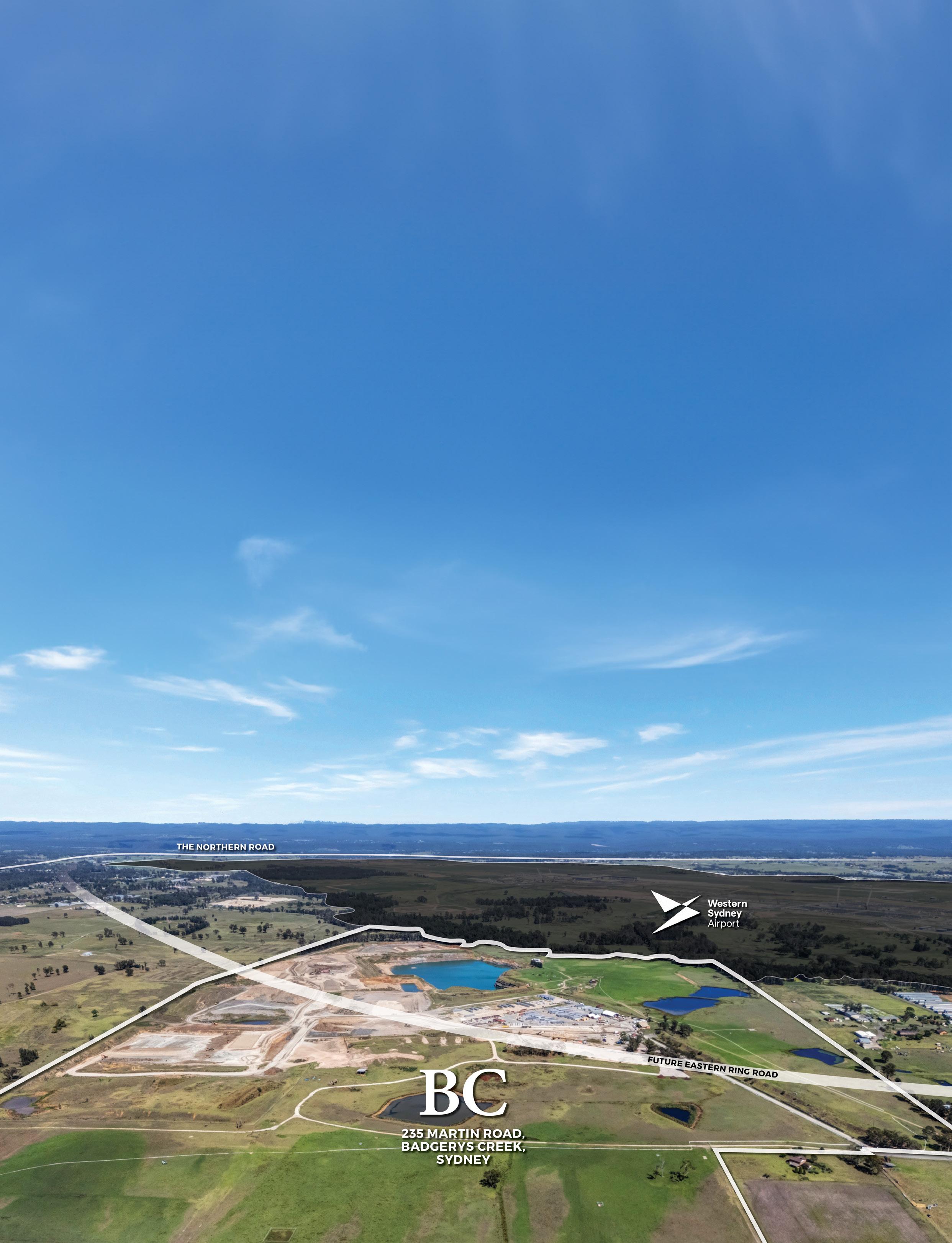 Strategically located approximately 48 kilometres west of Sydney’s CBD, the site benefits from excellent connectivity to major arterials and infrastructure, including the M12 Motorway, Elizabeth Drive, and the Northern Road. The Western Sydney Aerotropolis is set to evolve into a world-class precinct, focusing on industries such as advanced manufacturing, technology, research, training and education, freight and logistics, agribusiness, and mixed-use development.
