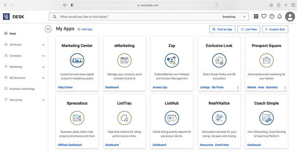 CBDeskistheColdwellBankerintranet thathousesallinformationpertainingtothe ColdwellBankerbrandandallowsquick accesstoCBtoolsandresources,suchas HomeSpotterBoost,MarketingCenterand ProspectSquare.