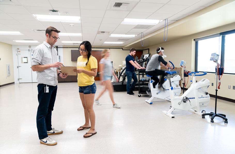 Kinesiology students are engaged in research, internships and handson learning opportunities. In addition to the program’s graduate assistant opportunities, many students seek employment as a personal trainer or group class instructor at the campus Recreation Center to gain experience in the field. 02