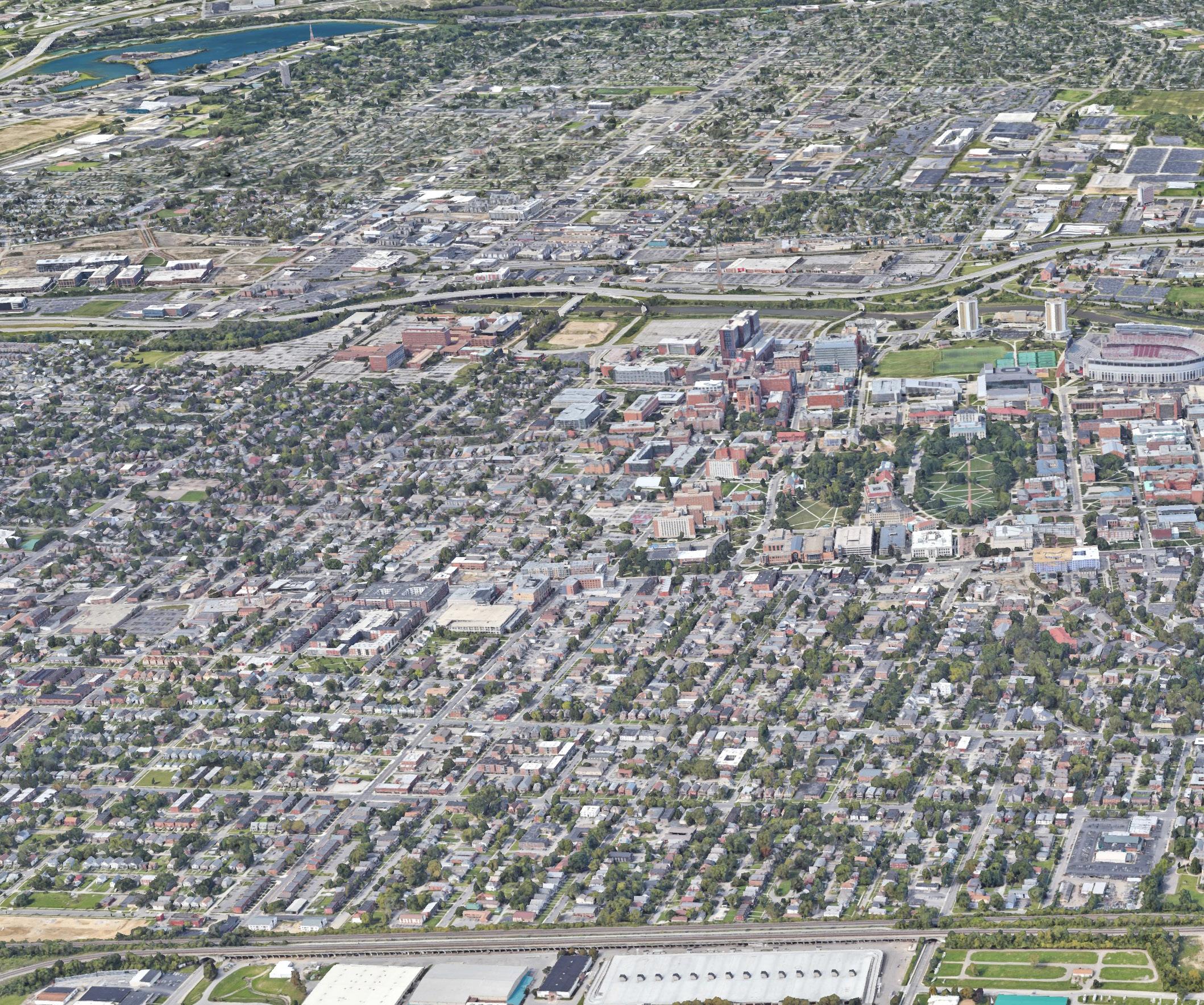 The focus area of this survey was the University District bounded by 5th Avenue on the south, the Olentangy River on the west, the Glen Echo Ravine on the north, and the railroad tracks on the east. The area includes 13 neighborhoods and is home to The Ohio State University.
