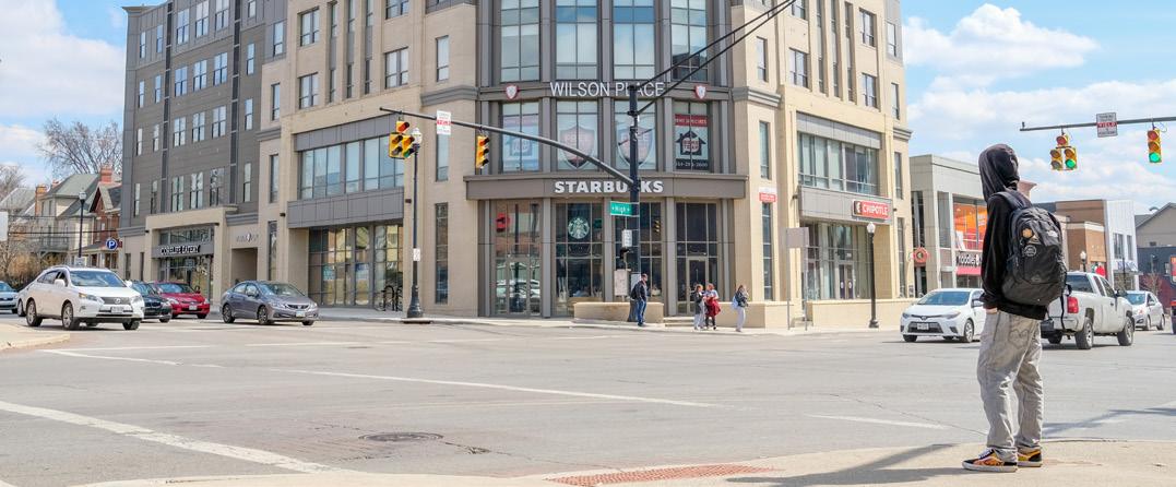demographics of a student population—lower median incomes and younger median ages from a rent-heavy market. According to population forecasts from Esri using Census data, there are a total of 35,899 residents in the University District living in 15,923 households (36% oneperson, 17% family, and 46% non-family households), and an average 2.13 persons per household compared to 2.39 in Columbus. As a reference, the City of Dublin has 49,328 residents in 16,819 households, while Upper Arlington has 36,800 residents in 13,627 households.