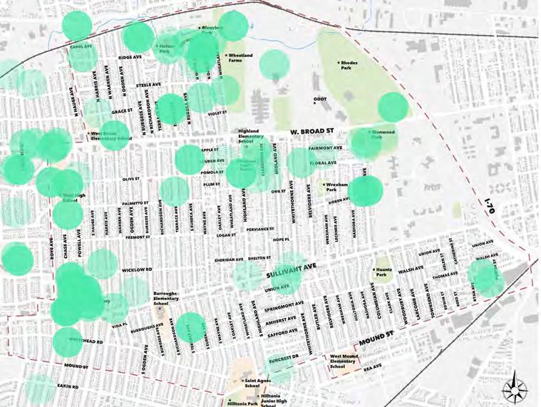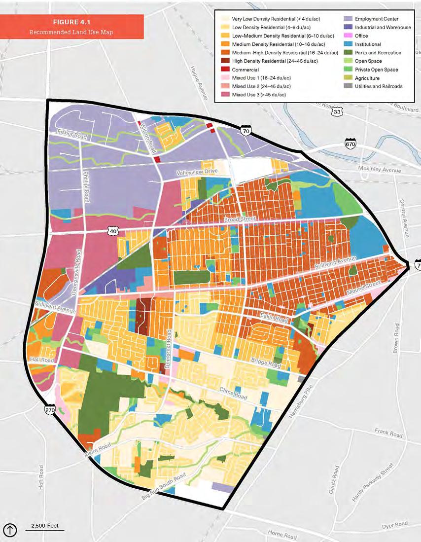 • Target commercial development and redevelopment to Broad Street, which has a greater potential as a commercial corridor than Sullivant