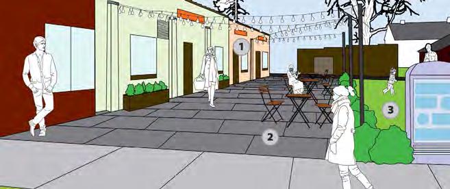 • Vacant and remaining lots along the street should be appropriately rezoned and encouraged to convert back into residential uses, public functions, or low-density offices