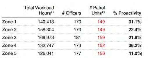 • Specifically, two officers should be transferred to Zone 2 and Zone 3, which have lowest staffing levels relative to workload, resulting in the least amount of proactive time available.