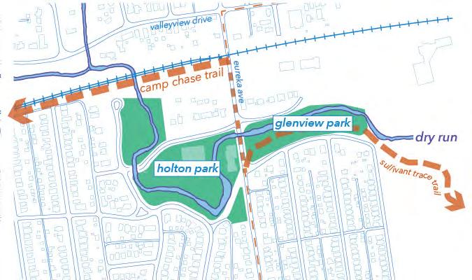 As Dry Run flows through Holton and Glenview Parks and along the Camp Chase and Sullivant bike trails, there are opportunities to educate the community about efforts taken to restore the stream corridor and highlight this significant urban ecosystem.