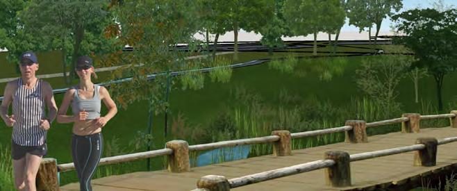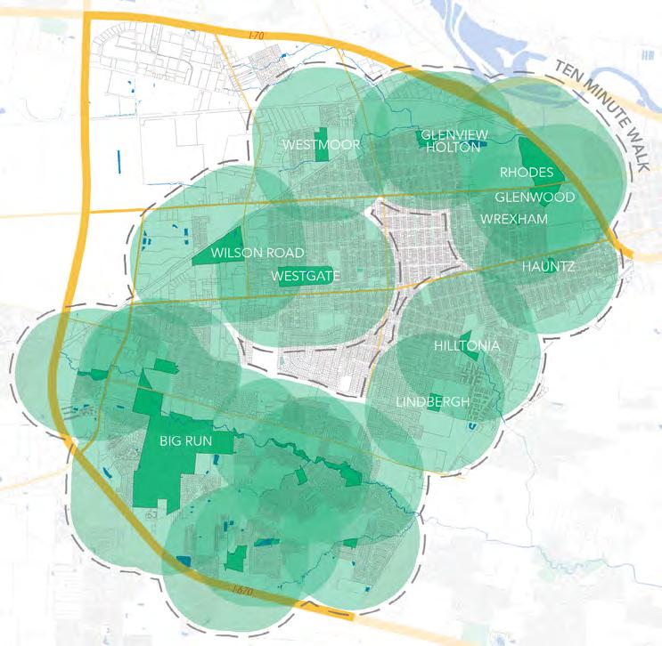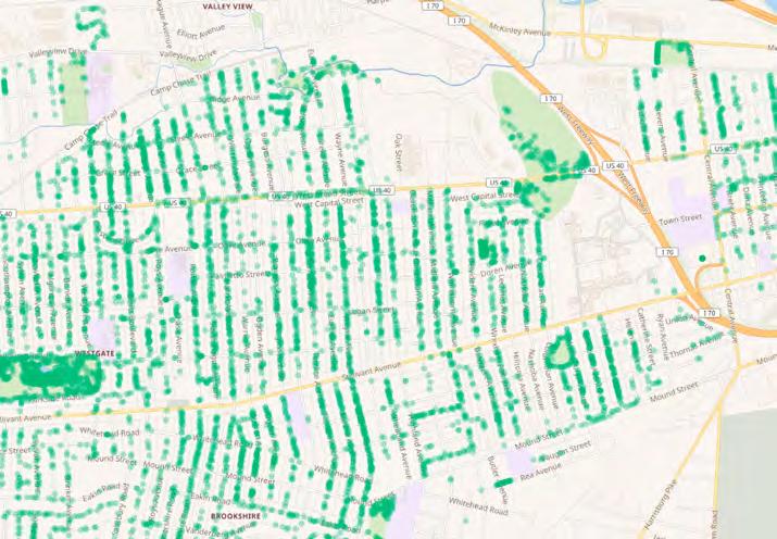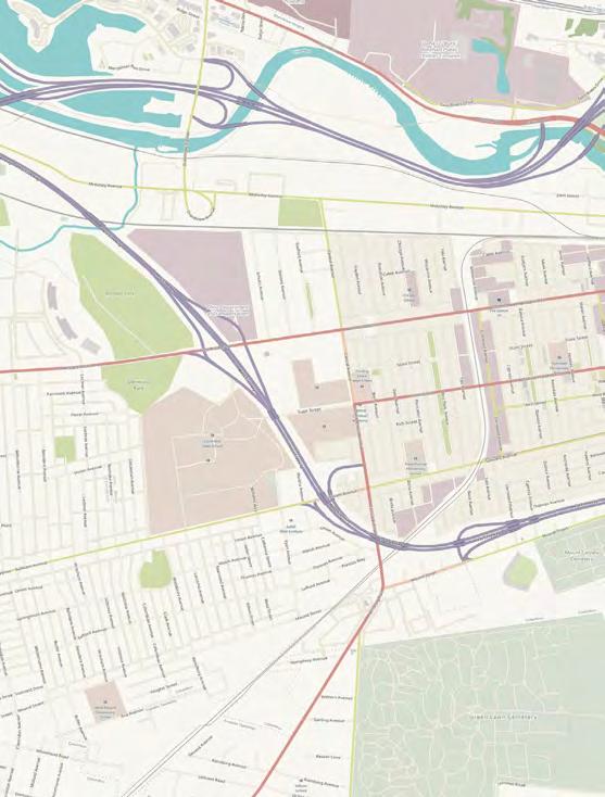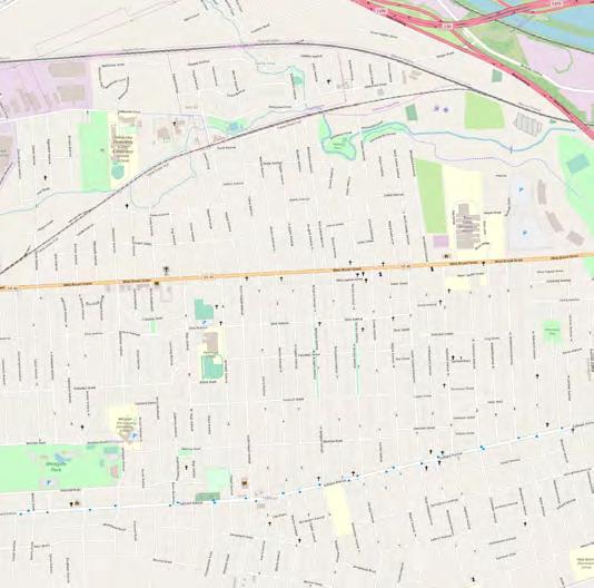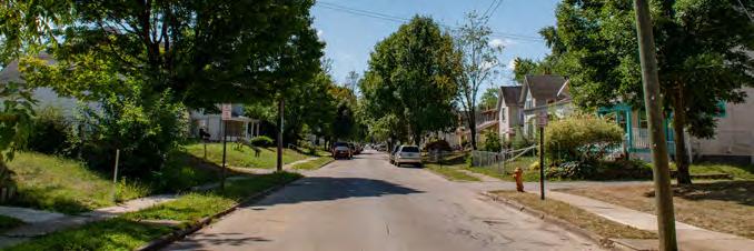 The creation of a mulched path around the perimeter of Holton Park will enhance stream access. Civic assets could be linked by installing a staircase at the terminus of Eldon Avenue to connect the Camp Chase Trail to Holton Park.