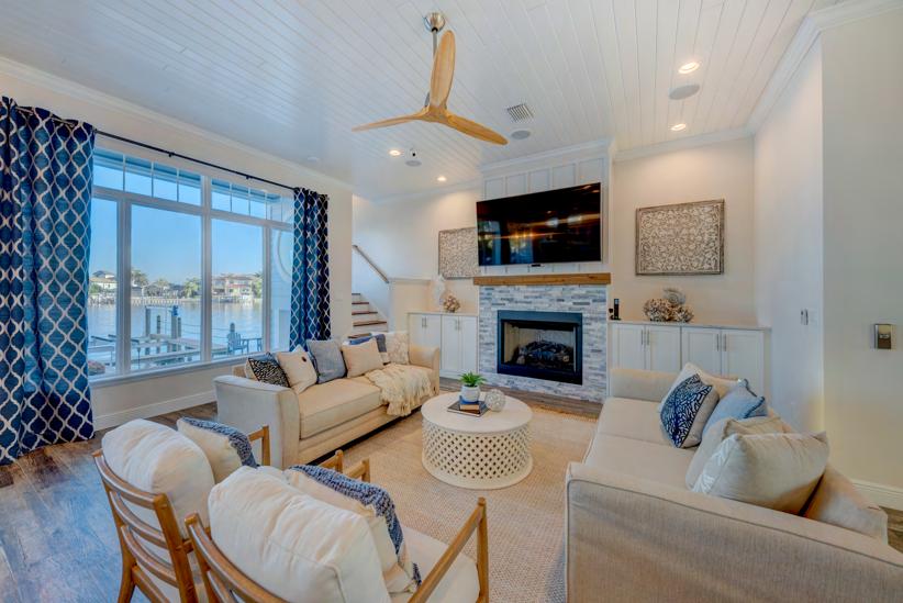 Enjoy 80-feet of waterfront, sailboat water, a private dock with a 24,000-lb lift, saltwater Pebble Tec pool, a walkway and a waterfall feature.