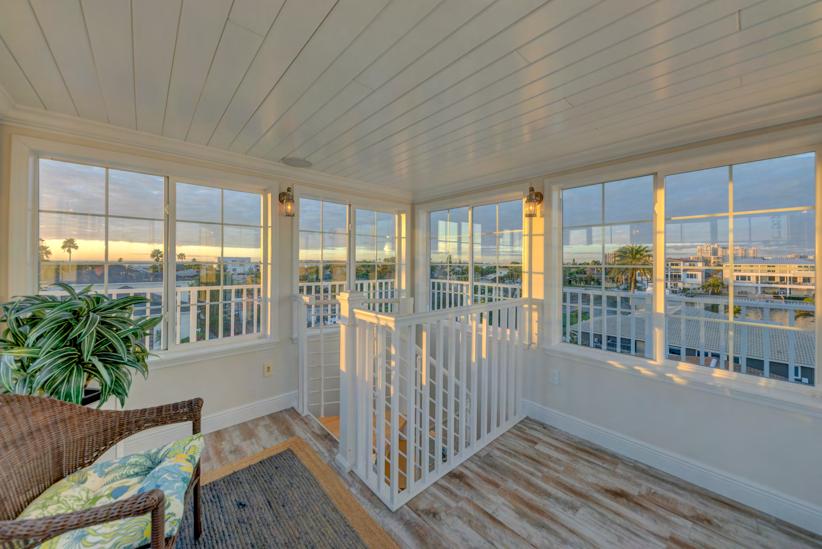 Seamlessly integrated indoor/outdoor spaces with an enclosed "lookout tower" afford panoramic sunrises over the Clearwater Harbor Intracoastal as well as gorgeous sunsets over the Gulf of Mexico.