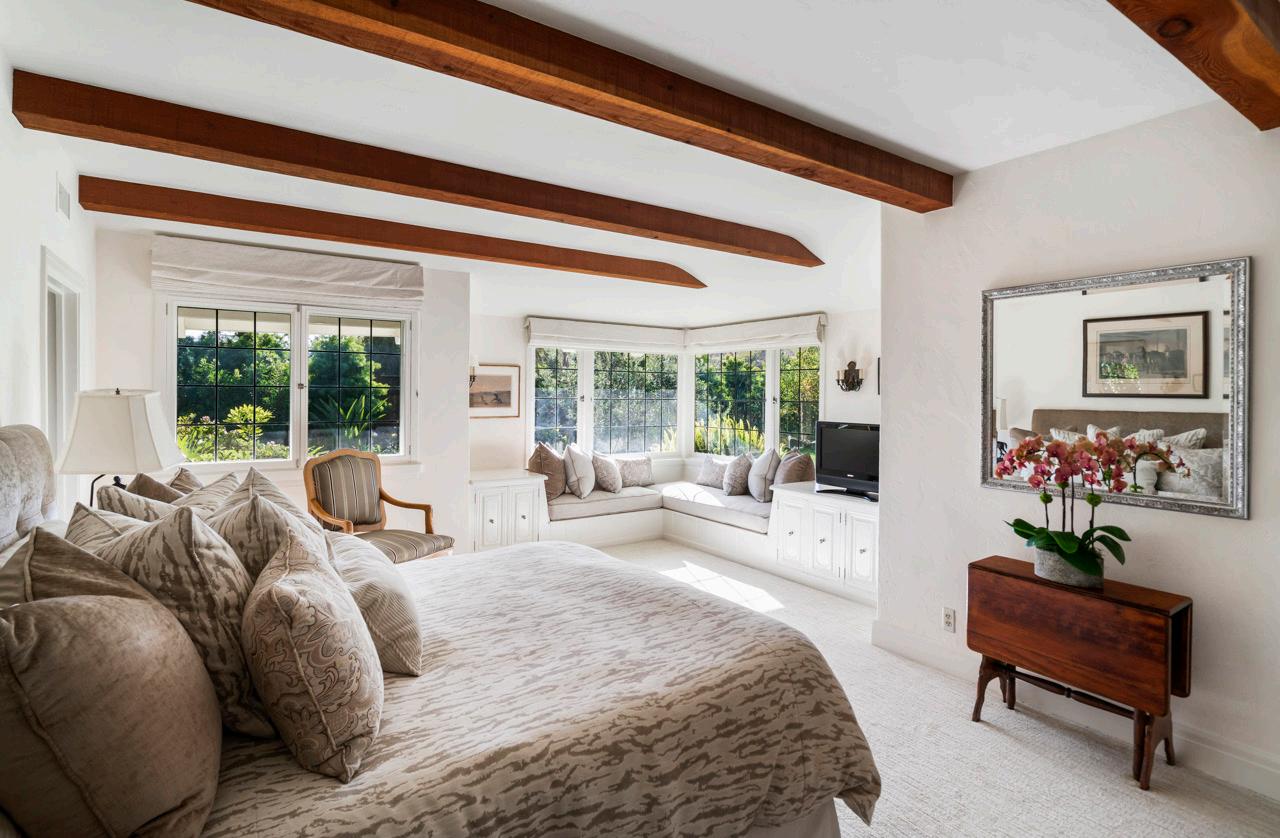 Exquisitely landscaped and charming Farmhouse located on over four acres on prestigious Bonsall Drive. In addition to the sprawling main house, there are three Guest Houses, all fully equipped with kitchens and bathrooms, suitable for use as offices, studios, or extended family. The main home exudes warmth and tranquility with the light filled main living room and the inviting country kitchen. You can watch tv, play pool or listen to music in the media/game room or enjoy meals in the formal dining room. Guests will feel at home in any of the three en-suite additional bedrooms. Upstairs is a beautifully appointed spacious main suite with sitting room, an elegant dressing area and luxurious bathroom. This is one compound you will never want to leave! Enjoy indoor-outdoor living year round, including on the North South lighted Tennis Court, the pool surrounded by fragrant flower and vegetable gardens and towering trees, landscaped patios and courtyards, and the custom Barn with its adjacent riding ring and direct access to scenic trails. This home is perfect for a family, those who wish to entertain on a grand scale, or those who crave a secure and private retreat, close to the beach, shops, parklands, and restaurants. You must see this property to truly experience its breathtaking setting and world class gardens.