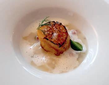 Angerichtet wurden die Scheiben mit der Estragonsoße auf einem Kartoffel-Selleriestampf und mit feinem Pfefferschaum garniert. Ein ausgesprochen gelungener Gang und eine wahre Gaumenfreude, von der LK GMdC Günter Kühnlenz prompt einen Nachschlag forderte.