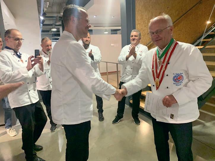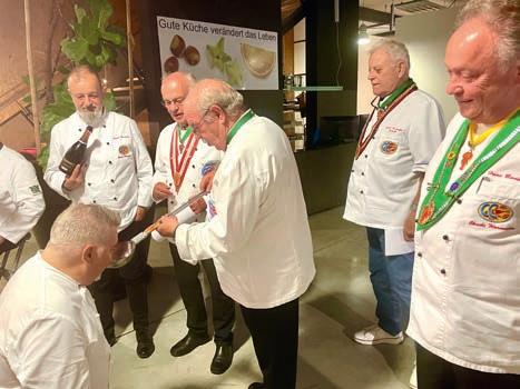 z Vier Kochbrüder sind in den letzten 5 Jahren zu uns gestoßen. Und all die Zeit haben wir Altgedienten uns bemüht die „Jungs“ zu animieren, ihre schlichten weißen Kochjacken mit einem blauen Band zu verzieren. Endlich die Bereitschaft, endlich haben es zwei durchgezogen und weitere zwei Brüder, André Köhler – der Mann mit der Tätowierung unseres Clubs auf seinem Unterschenkel – im Herbst und Martin Seligmann für Januar, Ihre Prüfungen angemeldet.