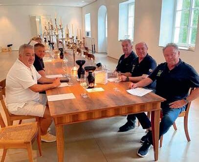 Zur Abnahme der Prüfung hatte er sich neben unserem LK GMdC Dr. Herbet Geipert unseren Vize- und Medienkanzler GMdC Frithjof Konstroffer und unseren GMdC „Soßen-Willi“ gewünscht. Natürlich war auch unser CL MdC Hans Biedert in der Jury. Da Getränke- und Menüplan viel Genuss erwarten ließen, waren wir bereits Tage zuvor auf das Höchste gespannt. Seine Getränkeauswahl ließ aufhorchen: Weine herausragender Winzer aus Rheinhessen und der Pfalz sollten das Prüfungsmenü begleiten.