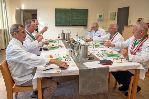 Mit 16 Brüdern am Tisch waren wir, wie meist, eine große Runde und nicht nur der Prüfl ing hatte reichlich zu tun. Auch er hat – wie es sich gehört – seine Prüfungsgänge mehrfach in kleinem Kreise ausprobiert und vorgekocht.