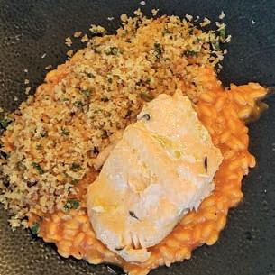 Das Menü: z Geräuchertes Forellentartar mit Meerrettich-Gin-Espuma z Saibling-Ceviche mit Rote-Beete-Tartar und Rettich z Schwarzwurzel-Suppe mit Wermut Shot und Laugen-Chips z Vol-au-Vent mit Huhn, Pilzen und Bechamel an Kohlrabi-Curry und rotem Reis z Ingwer-Custard mit pochierten Birnen