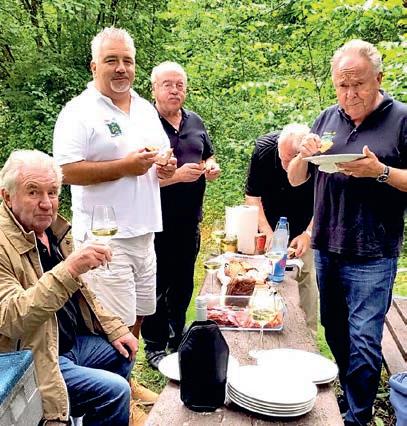 z Leider nur 6 Brüder machten sich Ende Juni auf, Mosel und Luxemburg zu erkunden. Natürlich durfte trotz Nieselregen auf halber Strecke das obligatorische Frühstück im Grünen nicht fehlen. Wohl vorbereitet mit warmem Fleischkäse, Wurstsortiment, Krustenbrot und Bruder Heinz Bajazzo trotzten wir dem Wetter.