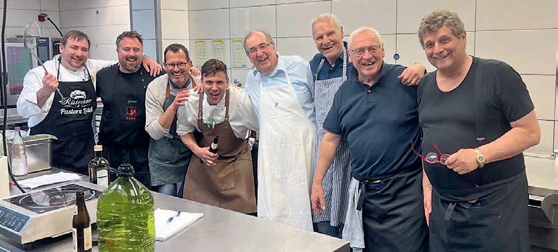 z Am 29. März 2025 fand die Küchenleitertagung in Leingarten statt. Neben vielen guten Gesprächen und den Vorbereitungen für den Großrat im Mai legten sich die Kochbrüder unter der fachkundigen Anleitung von LK Benny Rüger der gastgebenden Chuchi Leingarten ins Zeug und servierten neben gebeiztem Limettenlachs an Meerrettichcreme als Amuse ein Rindstartar an Miso-Mayonnaise und Zwiebelsud, Brasato mit Kartoffelpüree, Karotten und Bimi sowie ein Limetten-Joghurt-Eis mit Rhabarber-Tartelette als Dessert. Für die Weinbegleitung zeichnete Kochbruder Thomas Landesvatter mit Weinen aus dem Weingut Anita Landesvatter verantwortlich. Zur stärkeren Vernetzung innerhalb der Ordensprovinz wurde die Erstellung eines Newsletters sowie das Angebot eines gemeinsamen Kochabends aller Kochbrüder, die 2025 erfolgreich eine Rangerhöhungsprüfung abgelegt haben, im kommenden Jahr positiv beschieden. Beide Initiativen sind freiwillig und sollen uns allen die Möglichkeit geben, uns noch breiter über unser liebstes, gemeinsames Hobby auszutauschen.