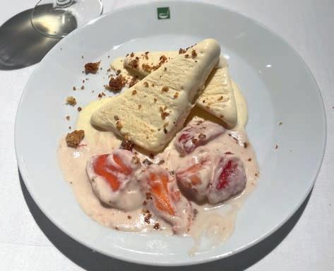 z Zweierlei weiße Schokoladencreme mit Rhabarber, Erdbeeren und Sorbet Ein schönes Spiel mit Gegensätzen: Süße mit Säurespitzen der Limette, Cremigkeit und Crunch. Ein perfekter Abschluß
