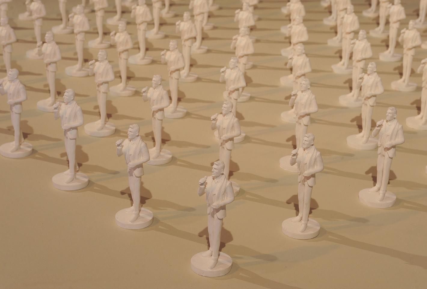 Hourani contributed one new work to the show, “Arab Idol”, a collection of a hundred figurines representing Palestinian singer Mohammad Assaf, winner in 2013 of the Arab version of Pop Idol.