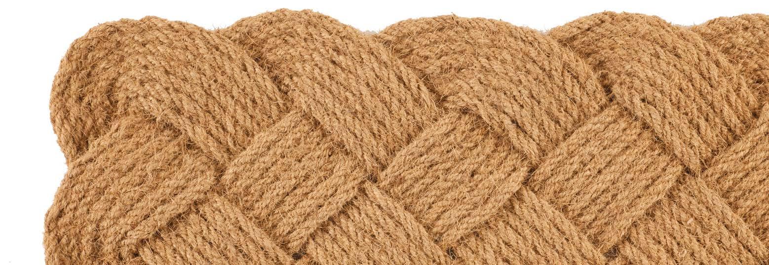 Soft, organic textures and golden shades of coconut coir impart undeniable natural beauty in this selection of handcrafted doormats. Artistic construction made of complex braids and intricate weaves greets visitors with an impression of sophisticated simplicity.