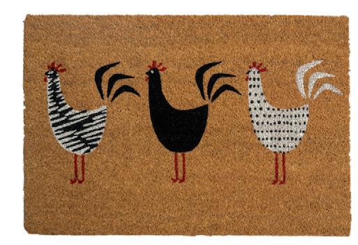 100% coir with backing. V: 45 x 75 cm - V-L: 60 x 90 cm - Case Pack of 4.