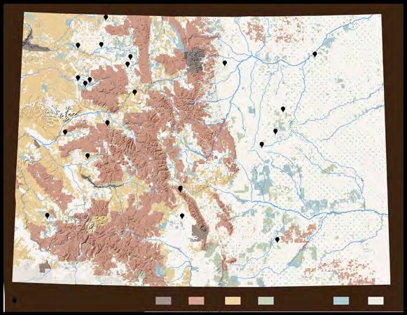 Including the Flat Tops in the Northwest, Sangre de Cristos in the Southeast, the Front Range, and the Sneffles Range of the Southwest are visible from 2022/2023 conserved lands.