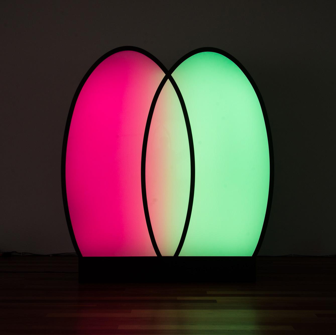Steel, aluminium, acrylic, paint, LED lights, raspberry pi, sensors, 265 x 235 x 30 cm