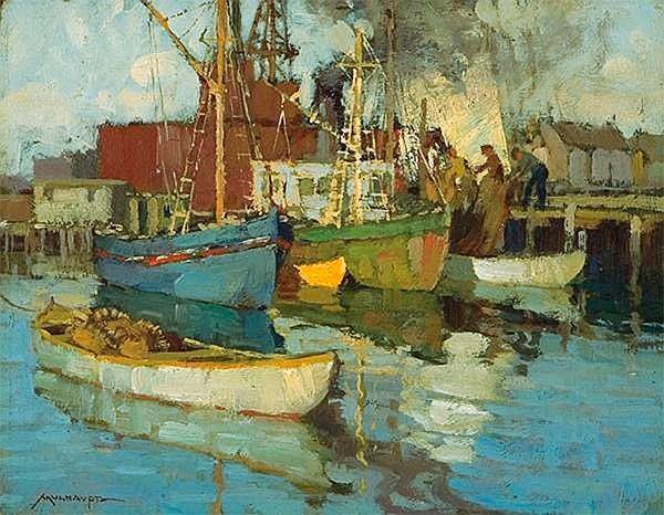 I thought he just painted boats. But he studied with Manet and Courbet. More here: https://www.thehistoryofart.org/winslow.../girl-and-laurel/
