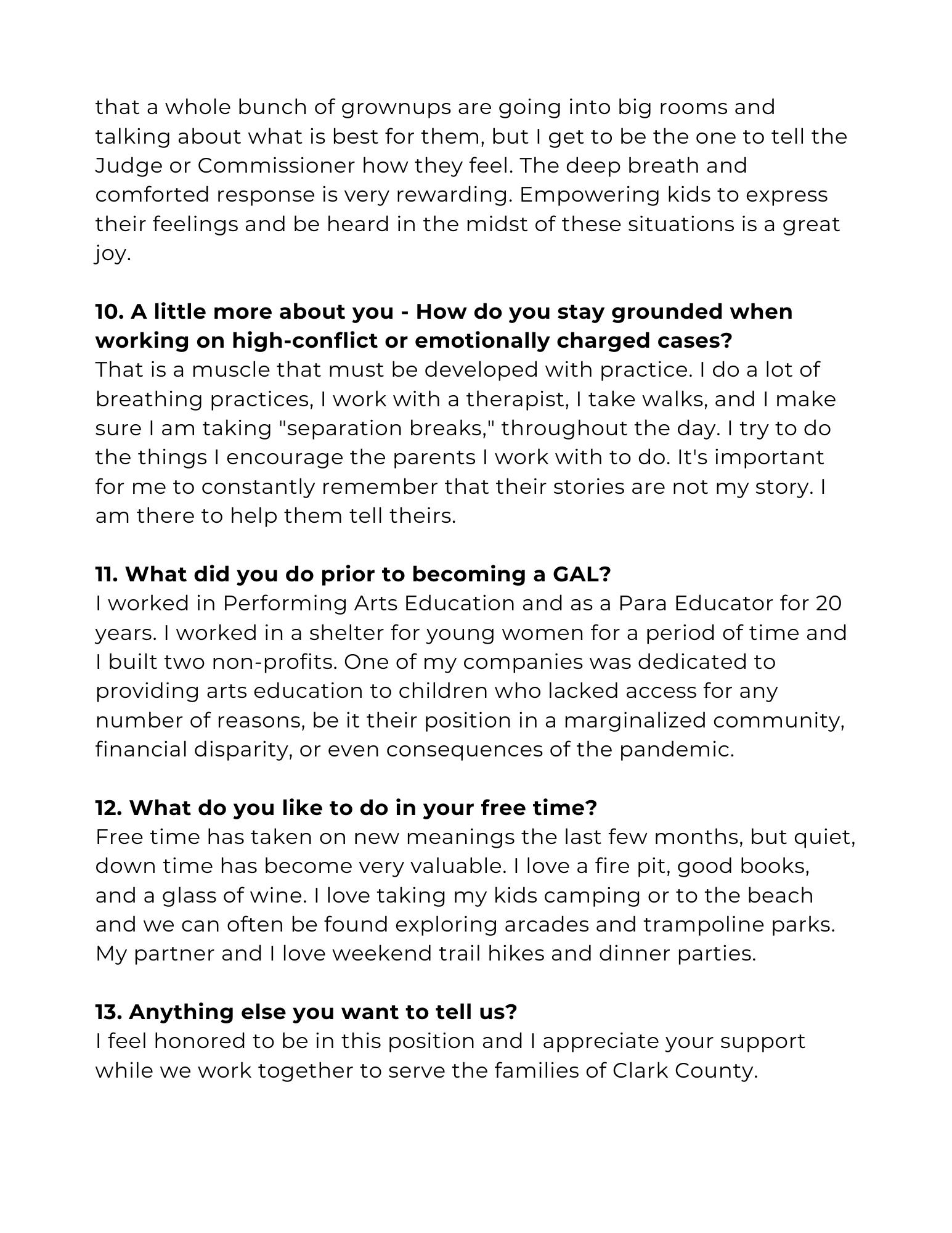 Navigate rounded out their 10th year by being honored with the Pro Bono and Public Service Award for a group by the Washington State Bar Association (WSBA). This award recognized their firm-wide commitment to providing pro bono services and giving back in impactful ways to the Vancouver and surrounding communities. This has been such a meaningful recognition of our diligent effort to provide as much pro bono work as possible to those in need. For over 4 years, Navigate has hosted and sponsored a weekly free legal clinic on Thursday evenings every week, offering a 20 minute consult for a wide variety of legal issues (both Washington and Oregon). They all regularly volunteer at the Volunteer Lawyers Program, work alongside the court on their pro se dockets to help with drafting orders and providing assistance to pro se parties, and more. All of their attorneys and staff are dedicated to these public service efforts and are very proud of that work.